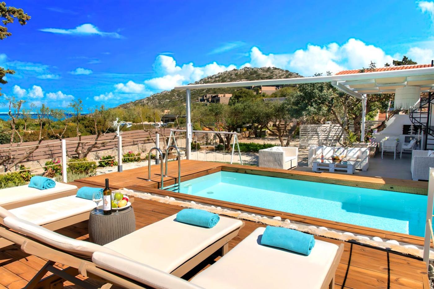 Villa. This villas standout feature is the fireplace. This villa includes 1 living room, 2 separate bedrooms and 1 bathroom with a bath and free toiletries. Guests will find a refrigerator, kitchenware, an oven and a microwave in the well-equipped kitchen. The villa also features a barbecue. The unit has air conditioning, sea views, a terrace and winechampagne is offered for guests. The unit has 5 beds.