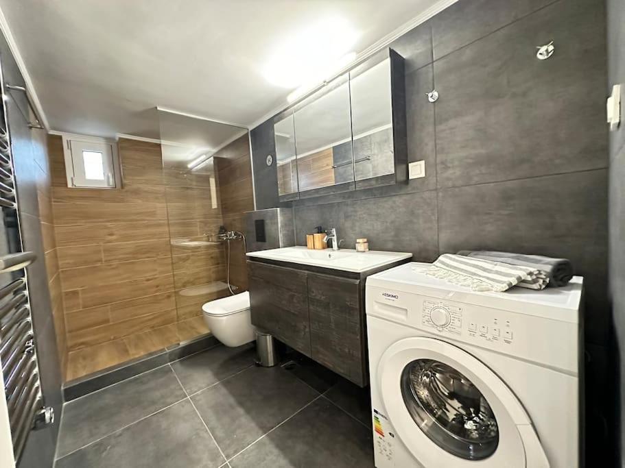 Two-Bedroom Apartment. Featuring 2 bedrooms and 1 bathroom with a hairdryer, this spacious apartment offers a well-fitted kitchen and a terrace. Guests can make meals in the kitchen that is equipped with a stovetop, a refrigerator, kitchenware and an oven. The air-conditioned apartment provides a flat-screen TV, a washing machine, a private entrance, a tea and coffee maker as well as garden views. The unit has 3 beds.
