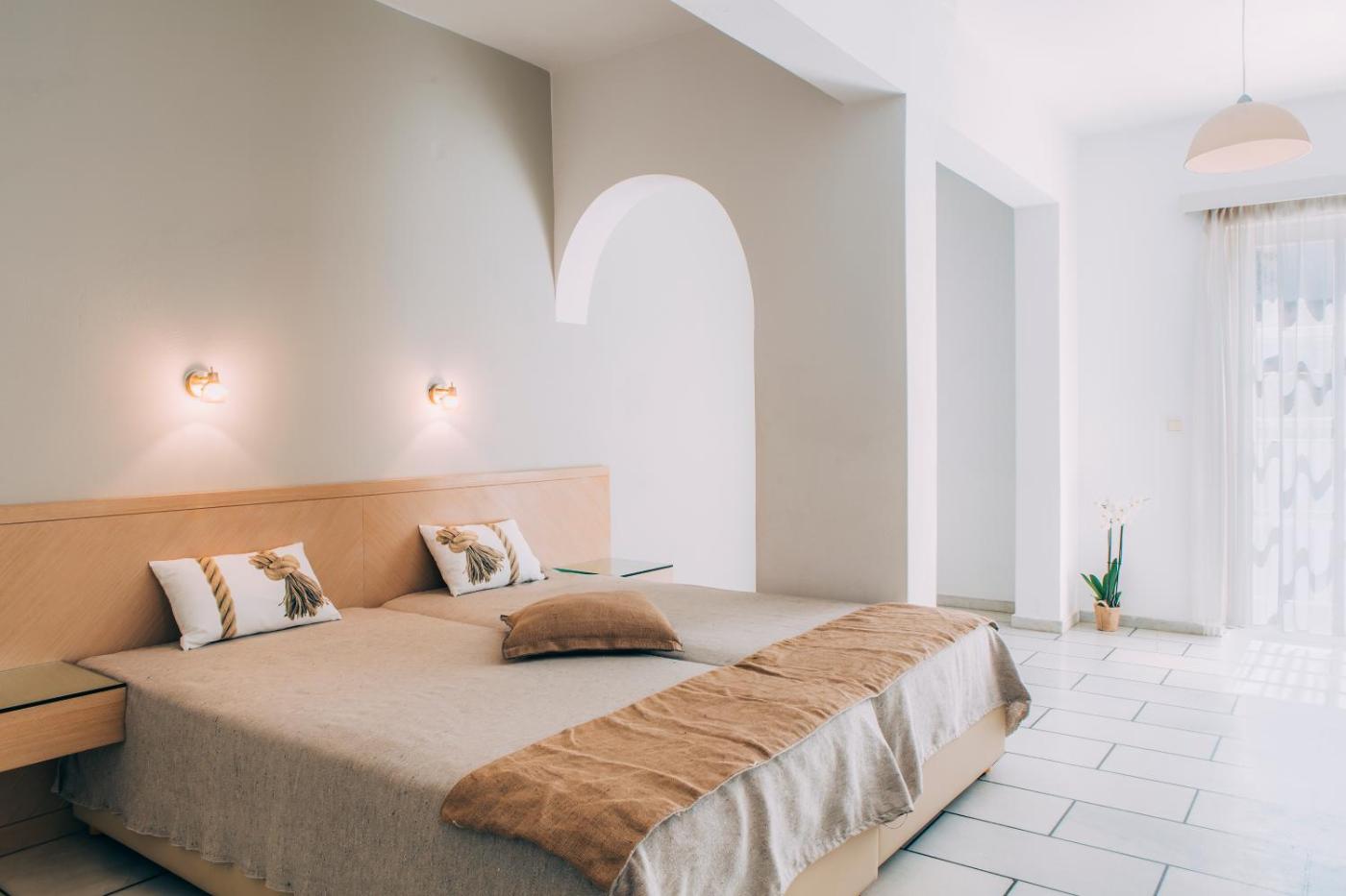 Rooms are decorated in a simple Cycladic style and come with air conditioning, fridge, kettle and hairdryer. Each room also features a smart TV with free streaming service, e.g.Netflix. Free WiFi is available in public areas.