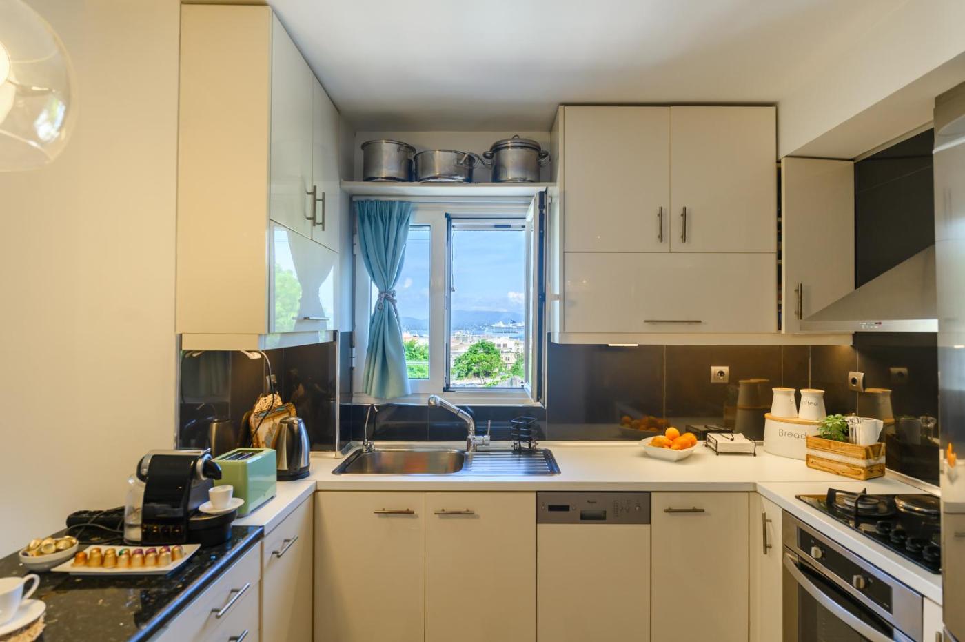 Apartment with Sea View. This spacious apartment features 1 living room, 2 separate bedrooms and 1 bathroom with a shower and free toiletries. The fully equipped kitchen has a stovetop, a refrigerator, a dishwasher and an oven. The air-conditioned apartment features a flat-screen TV with streaming services, a washing machine, a tea and coffee maker, a seating area as well as sea views. The unit has 3 beds.
