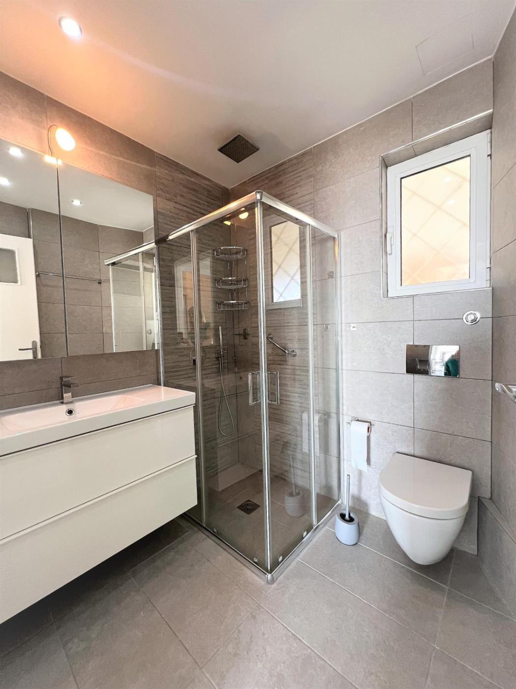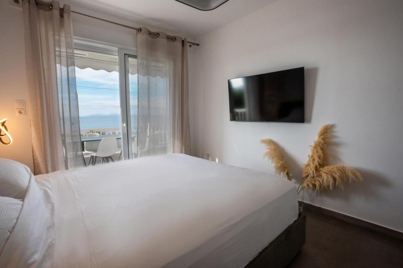 Two-Bedroom Apartment. This air-conditioned apartment is comprised of 1 living room, 1 separate bedroom and 1 bathroom with a walk-in shower. In the fully equipped kitchen, guests will find a stovetop, a refrigerator, kitchenware and an oven. Featuring a balcony with sea views, this apartment also offers a washing machine and a flat-screen TV. The unit offers 2 beds.