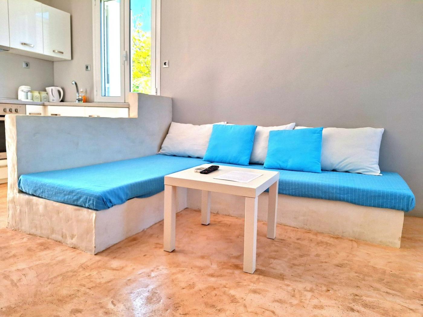 One-Bedroom House. Boasting a private entrance, this air-conditioned holiday home includes 1 living room, 1 separate bedroom and 1 bathroom with a shower and a hairdryer. The fully equipped kitchen has a stovetop, a refrigerator, kitchenware and an oven. Featuring a terrace with sea views, this holiday home also offers soundproof walls and a flat-screen TV. The unit has 2 beds.