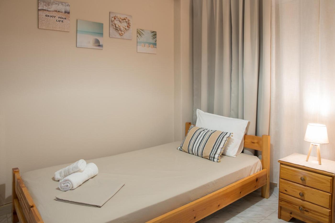 Two-Bedroom Apartment with Balcony and Terrace. Featuring a private entrance, this air-conditioned apartment consists of 1 living room, 2 separate bedrooms and 1 bathroom with a shower and a hairdryer. Guests will find a stovetop, a refrigerator, kitchenware and an oven in the fully equipped kitchen. The apartment also offers a barbecue. The spacious apartment provides a washing machine, a coffee machine, a seating area as well as a terrace with sea views. The unit offers 5 beds.