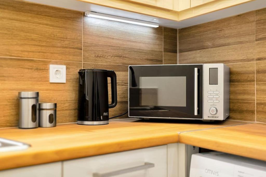One-Bedroom Apartment. This air-conditioned apartment comes with 1 living room, 1 separate bedroom and 1 bathroom with a walk-in shower. The kitchen features a stovetop, a refrigerator and a microwave. The apartment has parquet floors, a seating area with a flat-screen TV with cable channels, a washing machine, Smartphone, as well as a tea and coffee maker. The unit has 2 beds.
