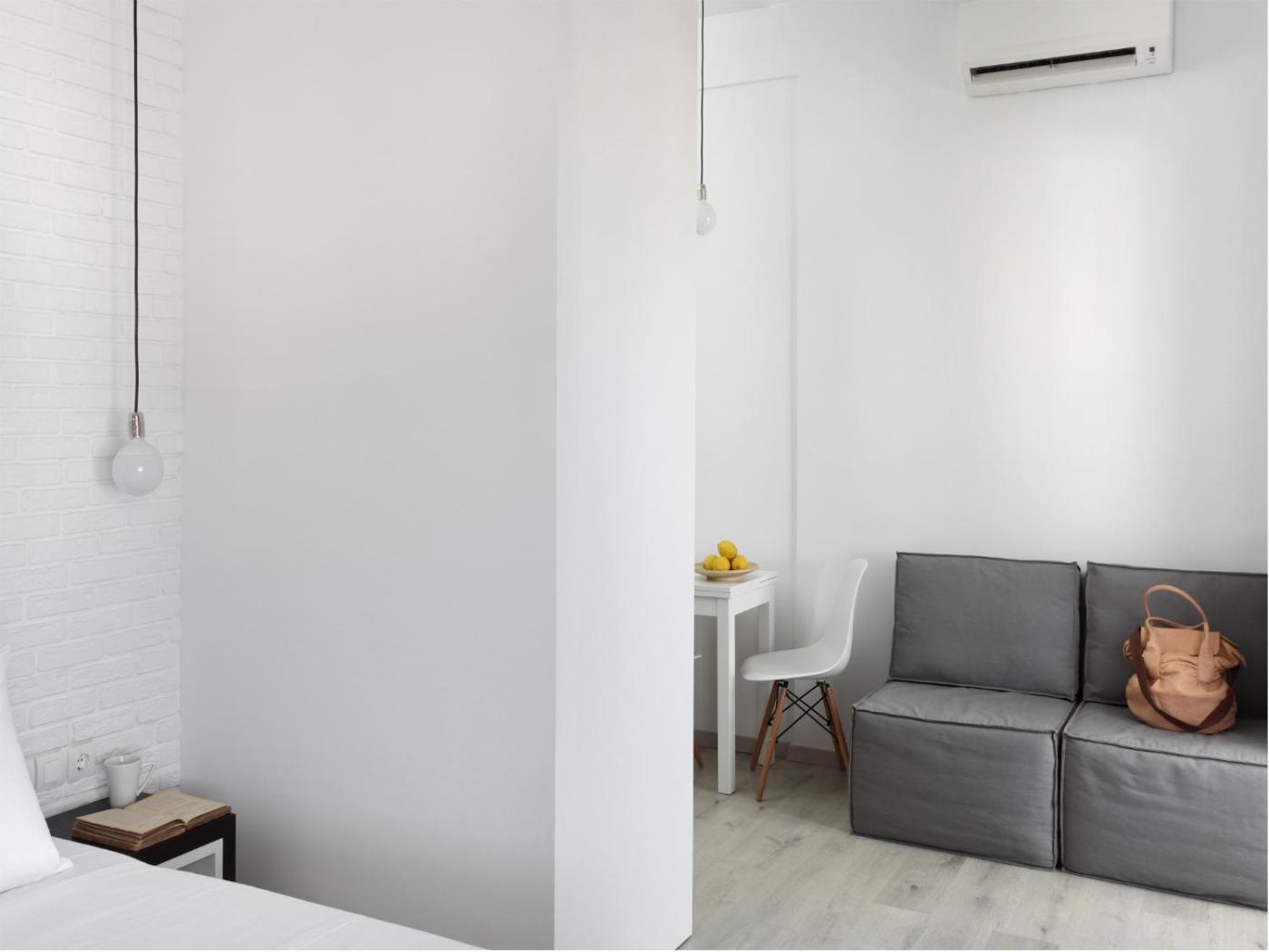 Penthouse Studio Apartment. Elegantly decorated apartment, on the top floor, featuring a furnished veranda with Acropolis and Lycabettus Hill view. Please note that this room type has either 1 double or 2 single beds and an additional sofa bed.