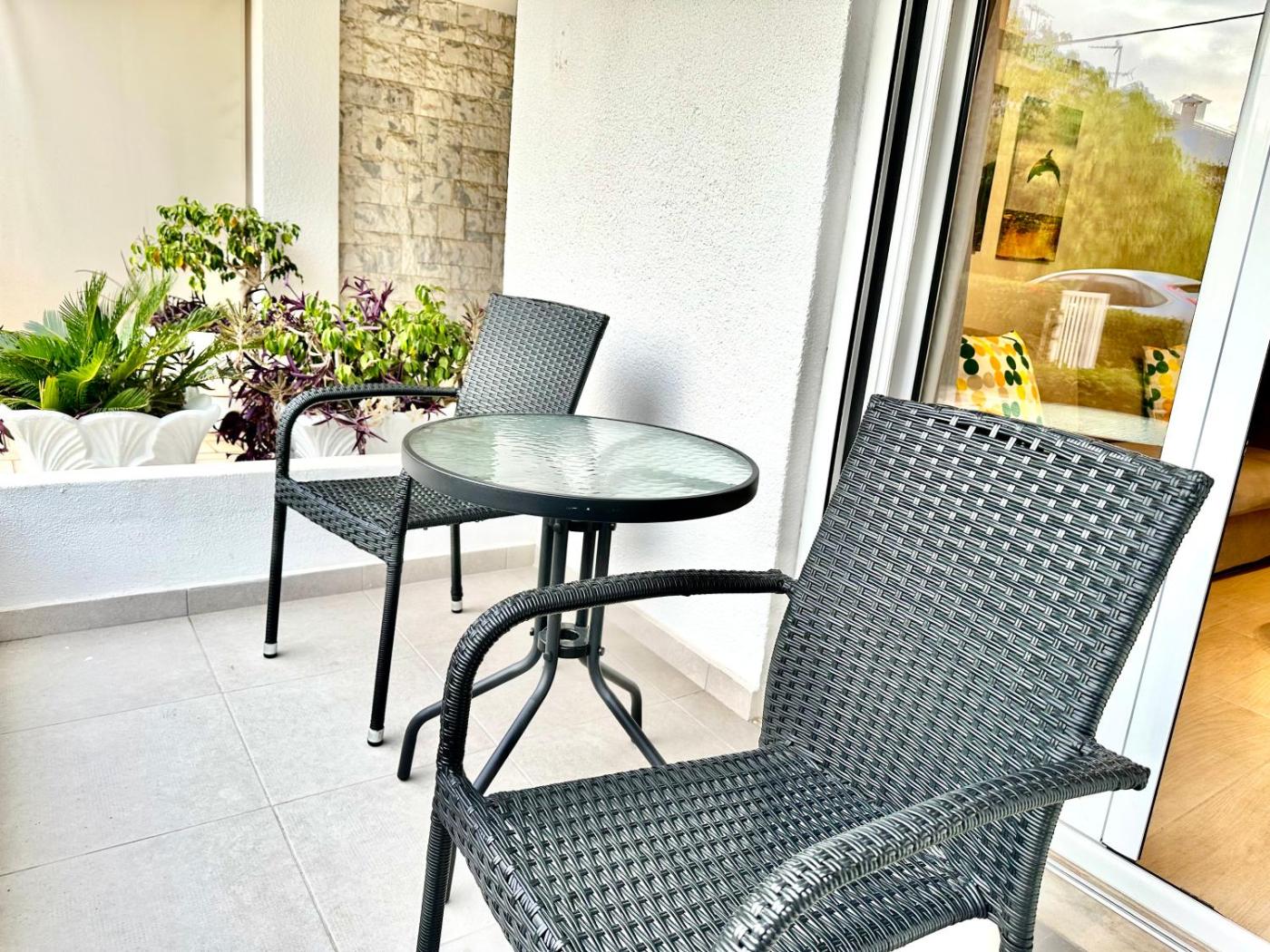 Two-Bedroom Apartment. Guests can make meals in the kitchen that is equipped with a refrigerator, an oven and a microwave. The air-conditioned apartment provides a flat-screen TV with streaming services, a washing machine, a tea and coffee maker, a seating area as well as garden views. The unit offers 2 beds.