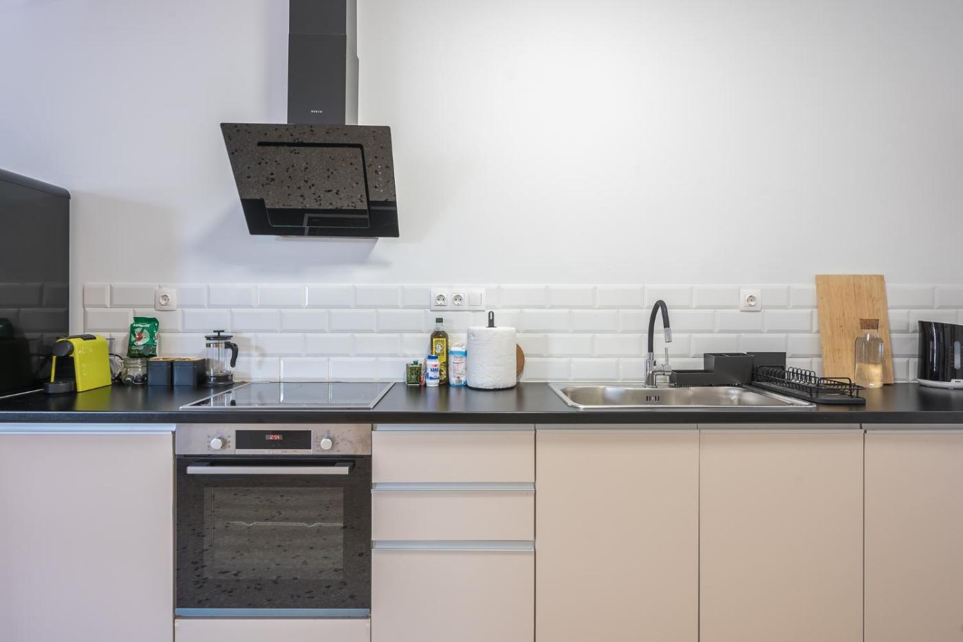 One-Bedroom Apartment. This air-conditioned apartment is comprised of 1 living room, 1 separate bedroom and 1 bathroom with a shower. In the kitchen, guests will find a stovetop, a refrigerator, kitchenware and an oven. Featuring a balcony with city views, this apartment also offers a washing machine and a flat-screen TV. The unit offers 2 beds.