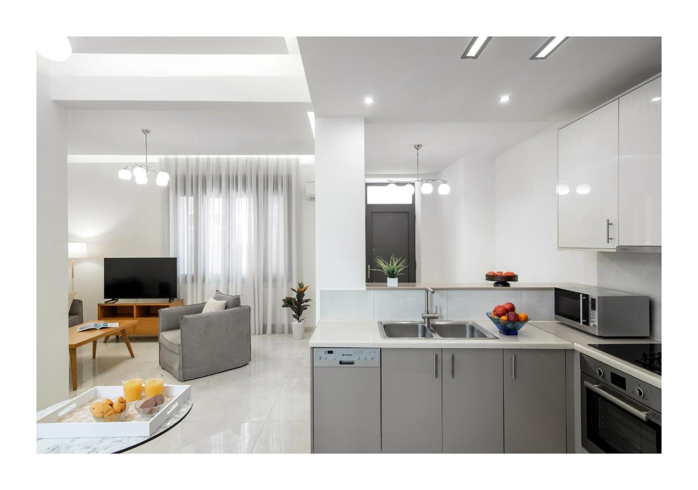 Three-Bedroom Apartment. The apartment features a tea and coffee maker, a seating area, as well as a shared bathroom featuring a shower and a hairdryer. In the fully equipped kitchen, guests will find a stovetop, a refrigerator, a dishwasher and kitchenware. The spacious air-conditioned apartment provides a flat-screen TV with cable channels, a washing machine, a private entrance, soundproof walls as well as ancourtyard view. The unit offers 4 beds.
