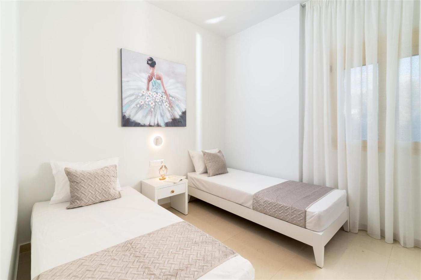 Two-Bedroom Apartment. Guests will have a special experience as this apartment offers a pool with a view. This spacious apartment comprises 1 living room, 2 separate bedrooms and 1 bathroom with a walk-in shower and free toiletries. Meals can be prepared in the kitchen, which comes with a stovetop, a refrigerator, a dishwasher and an oven. The air-conditioned apartment provides a flat-screen TV with streaming services, a washing machine, a private entrance, soundproof walls as well as mountain views. The unit offers 4 beds.
