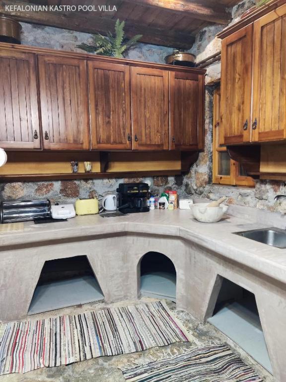 Kefalonian Kastro 4 Residence. This 2-storey villa features air conditioning, oven and seating area. Please note that its two levels are connected via an external staircase. Kefalonian Kastro 4 does not have a swimming pool. ;