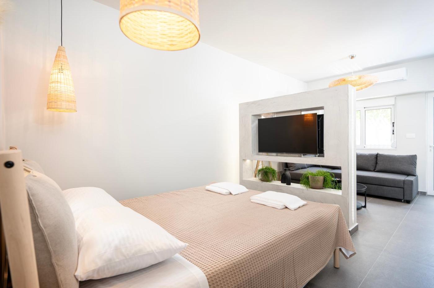 Deluxe Apartment. Boasting a private entrance, this air-conditioned apartment features a kitchenette, 1 bedroom and 1 bathroom with a shower and a hairdryer. Meals can be prepared in the kitchenette, which has a stovetop, a refrigerator, kitchenware and an electric kettle. The unit has a washing machine, city views, a terrace and winechampagne is offered for guests. The unit has 2 beds.