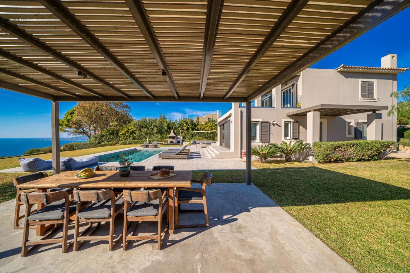 Deluxe Villa. Guests will have a special experience as the villa features a pool with a view. Featuring a private entrance, this air-conditioned villa consists of 2 living rooms, 4 separate bedrooms and 3 bathrooms with a walk-in shower and a bath. Guests will find a stovetop, a refrigerator, a dishwasher and kitchenware in the well-fitted kitchen. The villa also offers a barbecue. The spacious villa provides a washing machine, a tea and coffee maker, a seating area, a flat-screen TV with cable channels, as well as sea views. The unit offers 6 beds.