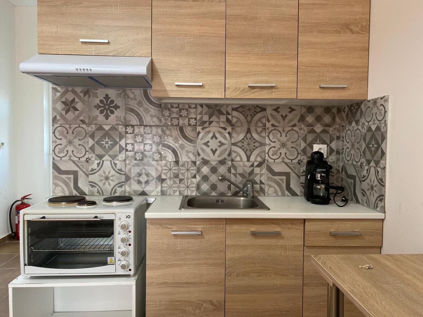 Studio with Sea View. The studio features a private bathroom equipped with a shower and a hairdryer. Guests can make meals in the fully equipped kitchen that has a refrigerator, kitchenware and an oven. The air-conditioned studio offers a flat-screen TV, a tea and coffee maker, a wardrobe, a tiled floor as well as sea views. The unit offers 2 beds.