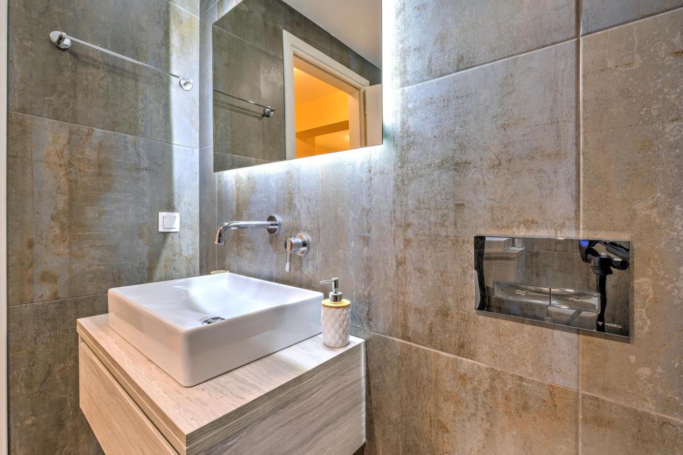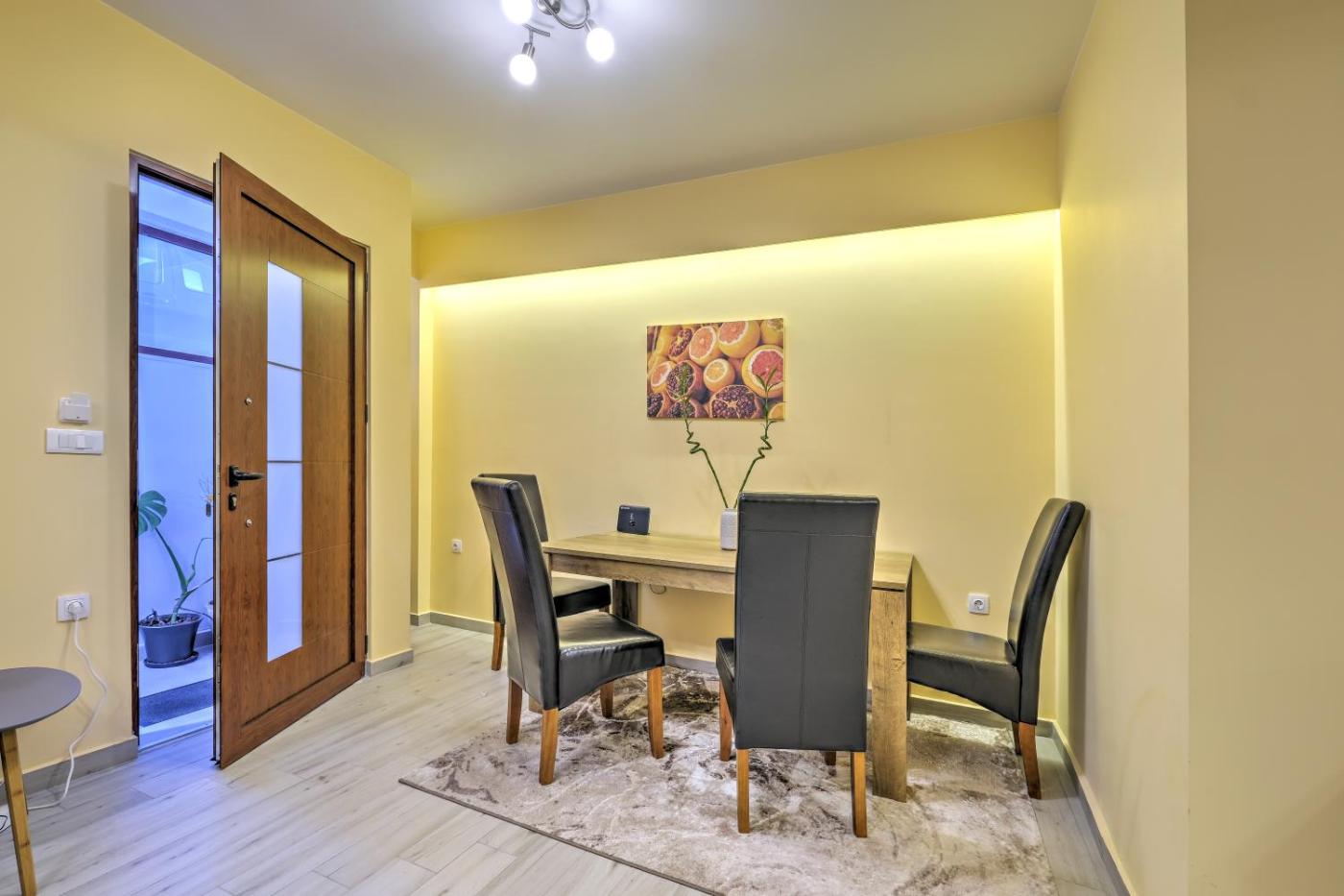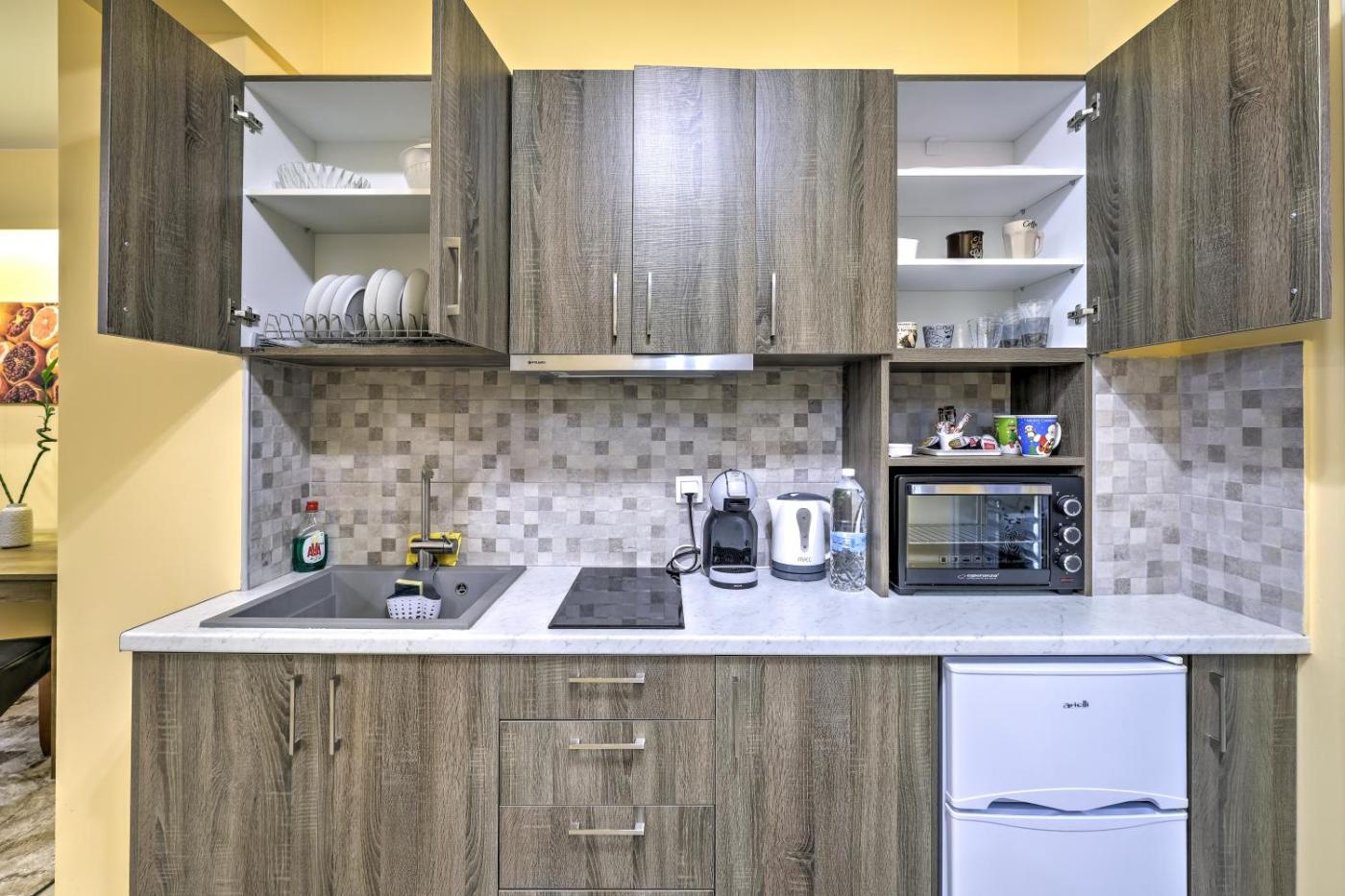 One-Bedroom Apartment. Boasting a private entrance, this spacious apartment also includes 1 separate bedroom, 1 bathroom with a bath or a shower, a kitchen and a dining area. In the kitchen, guests will find a stovetop, a refrigerator, kitchenware and an oven. This apartment is air-conditioned and has a seating area with a flat-screen TV, a wardrobe, an electric kettle, a sofa, as well as a tiled floor. The unit has 1 bed.