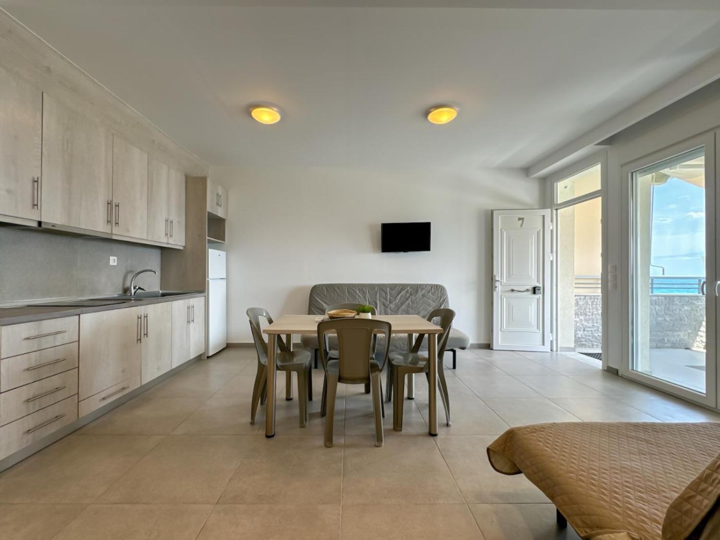 The apartment comes with 1 bedroom, 1 bathroom, bed linen, towels, a flat-screen TV with satellite channels, a dining area, a fully equipped kitchen, and a terrace with sea views. The property has an outdoor dining area.