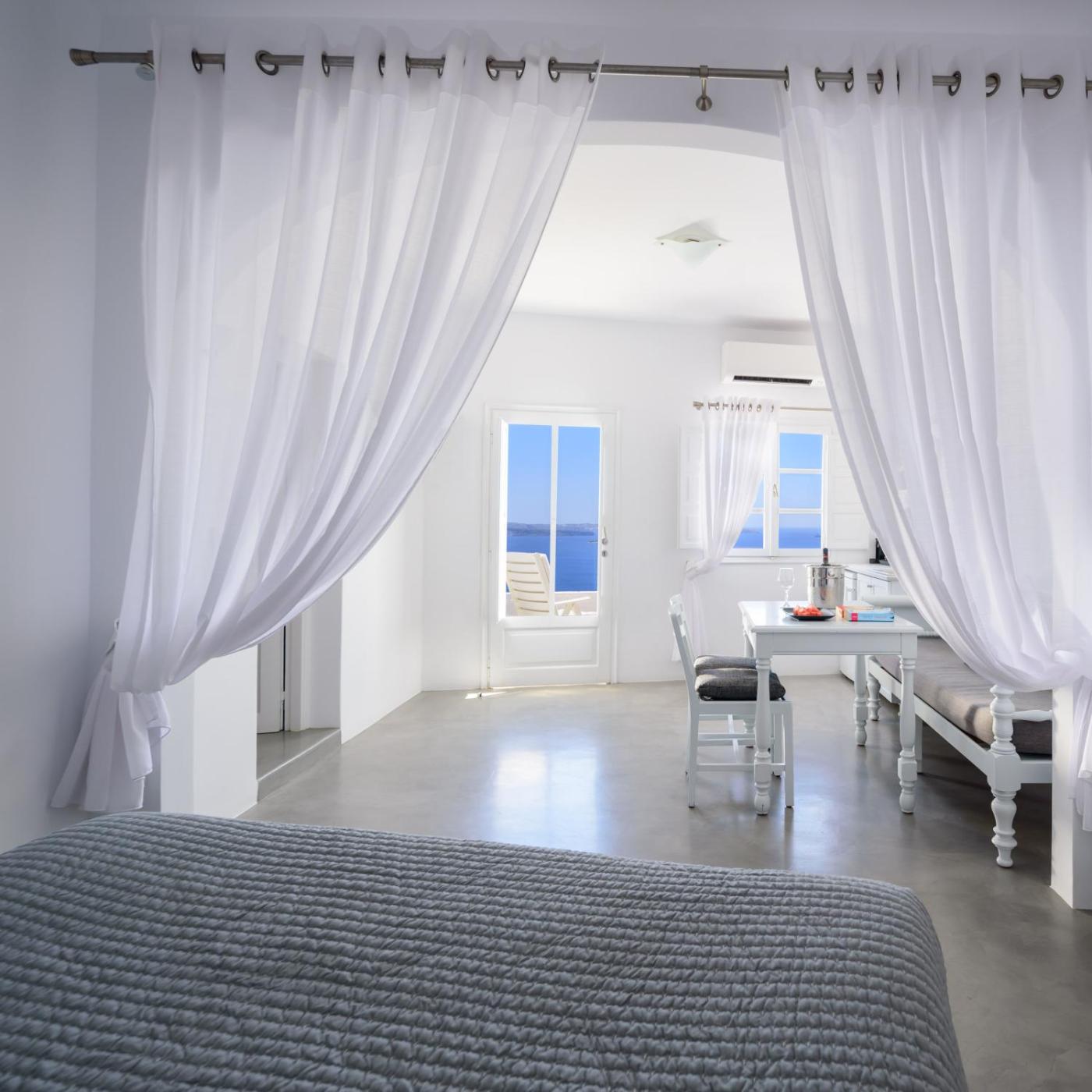 Deluxe Apartment with private Terrace and Caldera View. Offering breathtaking views over the caldera and the volcano from its private terrace, this Cycladic-style apartment includes a well-equipped kitchenette, satellite TV and free toiletries. Breakfast items are offered daily. ;