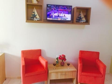 All studios and apartments are air-conditioned and equipped with kitchenette with cooking utensils and fridge, bathroom and TV. A baby cot is provided upon request.
