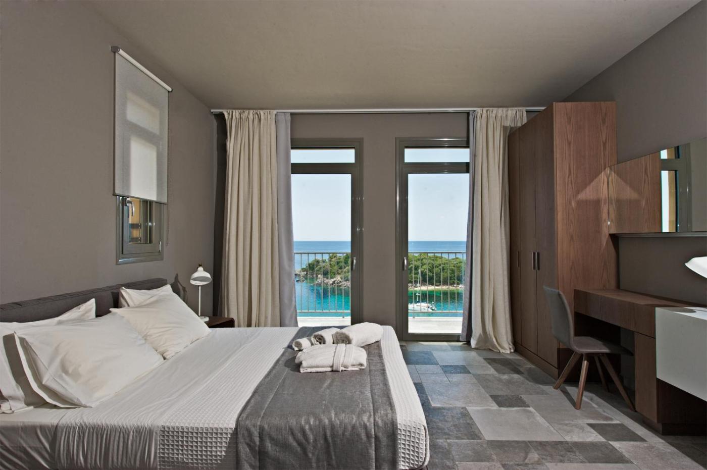 Residence with Sea View. This spacious residence has a fully equipped kitchen and a private balcony overlooking the Ionian Sea. ;