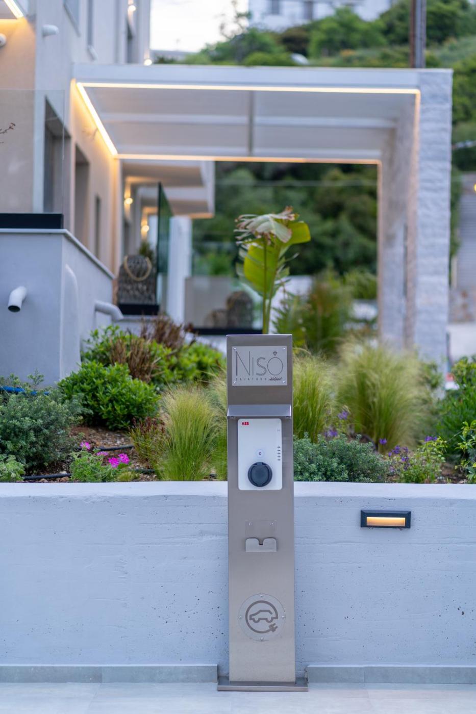 Located just 600 metres from Skiathos Port, Niso Skiathos provides accommodation in Skiathos Town with access to a garden, a shared lounge, as well as a lift. The property features sea and city views, and is 1.2 km from Skiathos Plakes Beach. There is a sun terrace and guests can make use of free WiFi, free private parking and an electric vehicle charging station.
