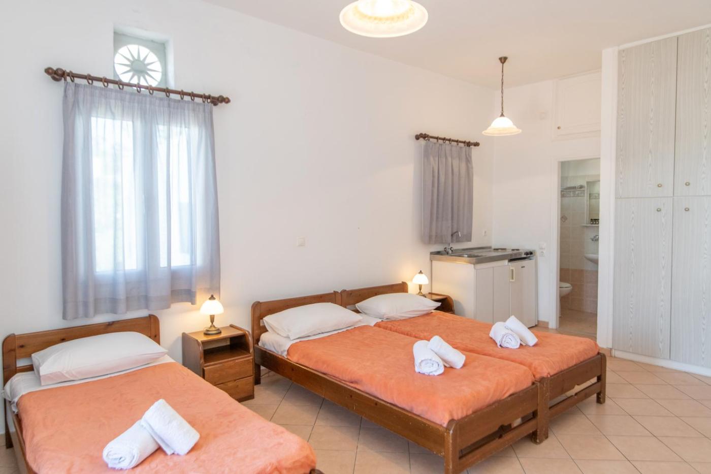One-Bedroom Apartment. The air-conditioned apartment features 1 bedroom and 1 bathroom with a bath or a shower and slippers. The apartments kitchenette, which has a refrigerator, is available for cooking and storing food. Featuring a terrace with sea views, this apartment also offers a wardrobe and a flat-screen TV. The unit offers 3 beds. ;