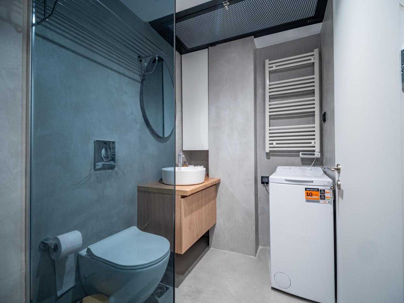 One-Bedroom Apartment. The air-conditioned apartment features 1 bedroom and 1 bathroom with a walk-in shower and a hairdryer. Guests can make meals in the kitchen that is equipped with a stovetop, a refrigerator, kitchenware and an oven. The apartment provides a flat-screen TV, a washing machine, soundproof walls, a coffee machine as well as city views. The unit offers 1 bed. ;